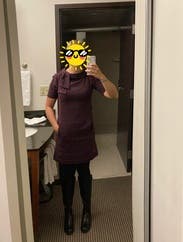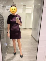 Cute work dress. Felt almost too short if you’re tall but there isn’t a slit in the back so it’s okay. Would wear again.