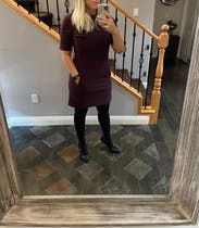 Loved the pockets. The dress was a tad bigger than I thought it would be but very comfy and didn’t look big. The pockets were the best I love that. I was afraid it would be too short but I wore boots and tights and it raised my confidence. I really like this one.