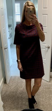 I loved this dress! The plaid was a great fall transition dress and it was a good weight. It was a bit baggy in the waist but still a very cute dress for work!