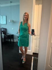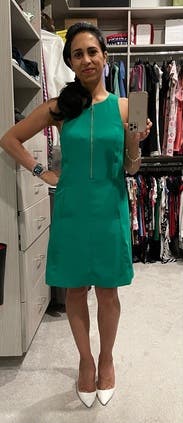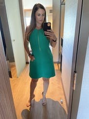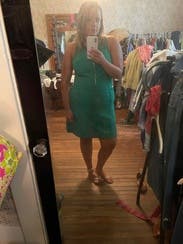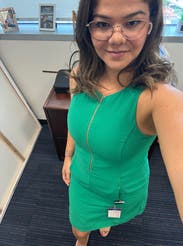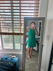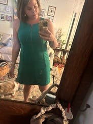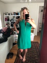 This dress was absolutely perfect for my work travels and meetings. The wrinkles can be a little stubborn to get out but worth it. Who doesn't love a dress with pockets? The zipper adds the perfect pop to the green. Love it!