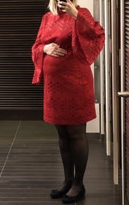 This dress was worn to a fundraising brunch and it worked perfectly! I loved the fun wide sleeves, and appreciated that it was not too fitted around the abdomen. I received plenty of compliments and absolutely loved the fabric, color and fit.
