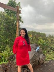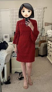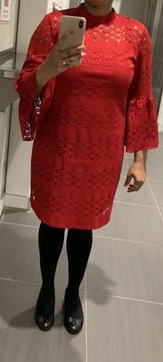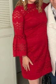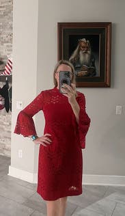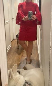 Beautiful red lace and on point with bell sleeves. Got so many compliments. Perfect for work or a special occasion. Fits true to size.
