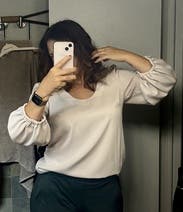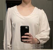 Love this easy comfy top, opaque cream fabric with lovely drape. I did bend over at one point and accidentally show some chest but oh well. Would make a great closet staple if I could afford it!