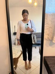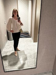 Absolutely loved this blouse. The neutral color went with everything, and the quality fabric is comfortable and doesn't require a camisole.