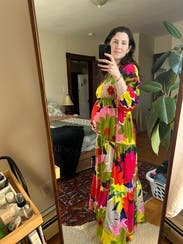 I loved the vibrant colors and initially wore it to a beach wedding. Now I dress it down for everyday and dress it up for church and semi formal events.