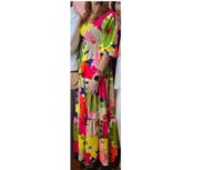 This dress is bright and fun but very flashy and a bit long (hit the floor on me)
