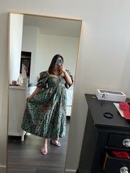Sorry for the graphic nature of this photo but I was not in Nashville for a bachelorette party. 🤭 Quite the opposite. Anyway… everyone LOVED this dress. You can adjust the strings on the front to increase or decrease the size of the keyholes/exposure. Love the pattern, sleeves and pockets. Dreamsville!