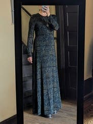 Wore for some fall photos 27 weeks pregnant. I got soo many compliments. Love the understated pattern and it was super forgiving for my bump. Only reason I deducted a star is because it is unlined. Had to wear a maxi length slip underneath. It always shocks me when designer dresses of this price point come unlined but still worth the rental if you have the appropriate undergarments!