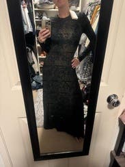perfect fit on the body, covered but sheer and so sexy. lots of compliments. 10/10 recommend. wore twice. considered buying. will probably rent again!