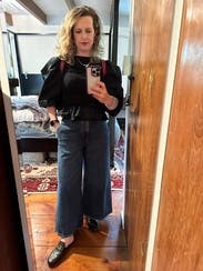 Comfortable and stylish. I expected the sleeves to overwhelm a petite frame, but they were perfect. Worn with high waisted jeans and Princetown mules.