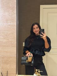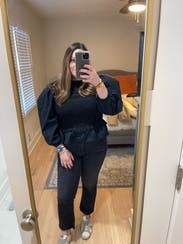 I would fill 75% of my swaps with Ulla if RTR ever would ever increase the # if items they purchase! Ulla is always rented, so I’m usually stuck with a season from last year. I wasn’t really excited about this top initially since it’s been on the site for a long time and I didn’t want to wear something that feels super “used” or black for that matter, with the daily heat here at 106. I will say, I was pleasantly surprised. Definitely too hot to wear outside so I wore it to an work dinner, where the AC was cranking. Paired it with a black skirt and got lots of compliments. People thought it was a dress. I tried it on with light denim and that looked cute too, so it’s a versatile piece you change the look on completely. Normally smocking isn’t very flattering on my mid section but Ulla’s fabrics are typically thick and this blouse was no different. Didn’t accentuate anything I didn’t want. The balloon sleeves were drama in all the right ways.