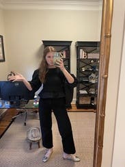 I thought this was really fun to wear, but I did wish there was maybe 50% less sleeve. I felt a little like I was in an Elizabethan drama but it also worked? Fun to mix it up but maybe too dramatic for zoom--you end up mostly sleeve in the little zoom window.