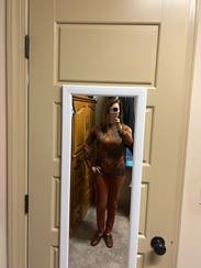 I love this! So good for fall and so smooth and soft to the touch. I’m wearing it with a spaghetti strap nude body suit under it for coverage as it is a bit sheer but you can’t really see it. TTS. rent :)