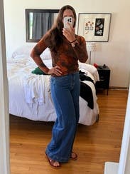 Loved this top you can definitely dress it up or down. The fabric feels really nice and smooth and is pretty lightweight so doesn't get too warm. Wore it for some nicer dinners and events but found it easiest to style with jeans so maybe there's a ceiling there