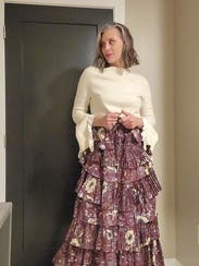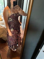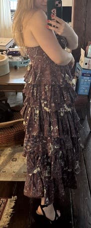 Beautiful dress- Ulla has done it again. Loved the ruffles on this dress and the way it moved. My only note would be that the straps were a little long an non adjustable which caused them to call throughout the day.