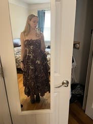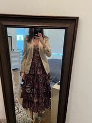 I feel like the pictures don’t really do it justice. TBH, I rented to play around with UJ sizing but I have never gotten so many compliments on a dress. Wore to Valentines Day date night, am wearing again to a birthday brunch (will be overdressed, don’t care, looking for an excuse to wear more than once). It’s cute with heels, boots, and white sneakers. Wore with a trench coat and fur lined coat. Just rent it. Size up if you’re bigger chested, it’s true to size if not.