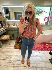 Loved the pattern on this top and how lightweight it is but it’s very wide. Definitely would not have worn it without it being tucked in. Overall I liked it and it was cute with a statement belt.