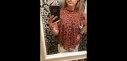 Loved this shirt. It's very loose so I wore it tucked in to high waisted jeans. Cute pattern and fun sleeves. I would definitely rent again.