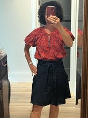 Loved this top. Received several compliments and was easy to throw on with jeans but made me look stylish. Only downside was the neckline was a bit low and would sometimes show my bra. Still loved it and will rent again