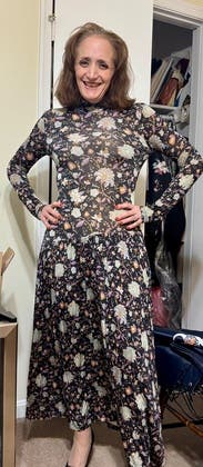 I love this dress. So comfortable and flattering. I rented it when I was 5 months postpartum and again a year later. It's just very easy
