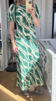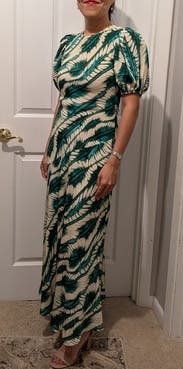 Love a silk bias cut dress! So comfortable I felt like I could stay in it all day every day. Breezy for hot summer days too. The sleeves were slightly tight so they moved up on my arm a bit but nothing I was too bothered by. Will rent again!