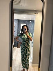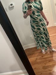 This is such a fun dress. It’s so flattering and looks amazing on. I sized up and am glad I did, as I’m curvy. Would rent again!