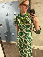 The colors of this dress are gorgeous, the fit is so flattering…if it weren’t so expensive, I’d buy it in a heartbeat. Wore it to work, the opera, and a tv show taping - she’s versatile!