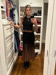 Wore this to work and thanksgiving. You cant tell in photos but the brown is a sparkly knit which just add some festive flare to the fit. So many compliments