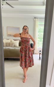 Loved this dress. Can toggle between dressy and casual. Super flattering.