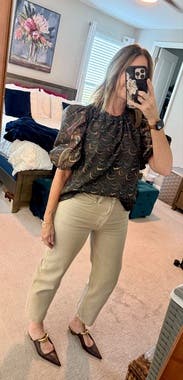 Loved this top! Perfect amount of “puff” in the sleeves! Also, a light/breezy fabric!