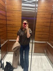 Obsessed with this top. Work with jeans or black pants to work. Will rent again
