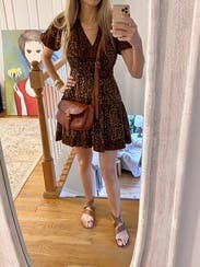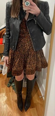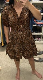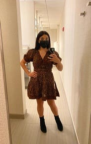 I finally got to rent this dress, and I adored it. The fit was perfect with tights for work since it's a little short. It's hard to layer though because of the puff sleeves. I loved how the pattern almost doesn't look like leopard from afar. It's a gorgeous cut dress and well worth the wait!