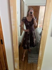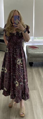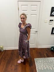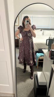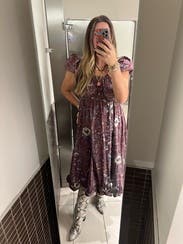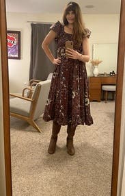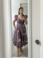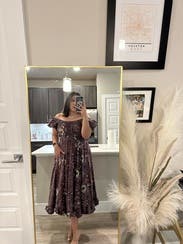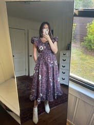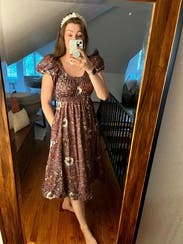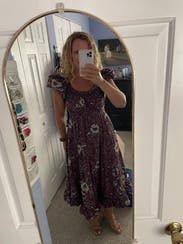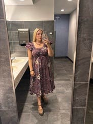 Beautiful and comfy dress perfect for a floral themed tea party on a bachelorette trip. Fit well and was flattering all around