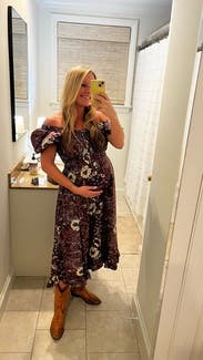 Wore this for a western themed engagement party and for a fall baby shower- it was perfect for both events! I wore it at 8ish months pregnant too! Super comfy and got lots of compliments!