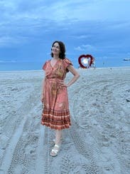 Such a great dress for vacation. It doesn’t wrinkle when rolled up and flows with the wind! Has a cute tie to add some shape!