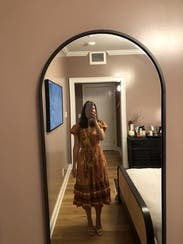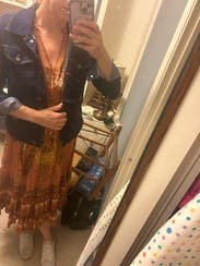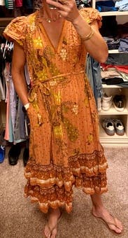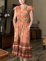 If your thinking about renting this dress, you should!! I got so many compliments! I wore it for fun and work, I would describe it as boho chick! Fabric is beautiful and color is pleasing, very feminine and flowing