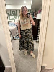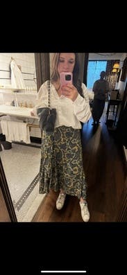 Loved this skirt on me. Wore it on a winery tour in Italy and totally fit the vibes. Would probably look a little better on someone taller than me, but still works for us petites!