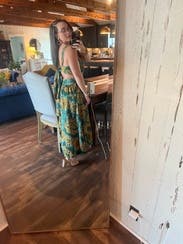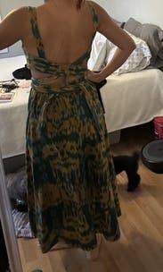 Absolutely loved the cut of this dress. The back is out but it’s easy to tie and super fun to wear. If are large chested you will need to size up. I’m a large b/small c cup so it was a bit revealing but fine for a date night with my husband 🥰
