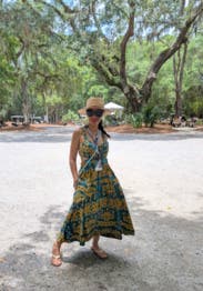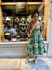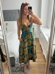 Really loved this dress, wore for a wedding welcome party. The back made it so much more special. Very comfortable, loved that it had pockets, and easy to wear. Fabric made it more casual, which worked for my event.