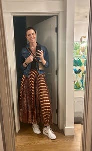 I really wanted to love this skirt. There is SO much material and volume that it was really unflattering on me. It made my waist look much bigger than it is.