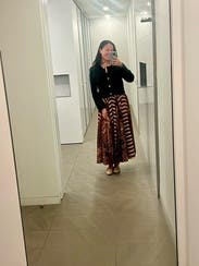 Stunning pattern and fabric for a luxe/expensive look and feel. Surprisingly heavy, but I like that. I’m size 2-4 and went with a 4 based on reviews, but it was too big and sat below my natural waist and made it longer, and I am wishing for the smaller size. This is a lot of skirt for a petite frame but I’m here for it and will enjoy wearing it in the fall weather.