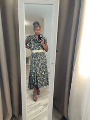 I love an Ulla design! I stalked this set all summer as I wanted both pieces at the same time. Finally had both pieces in my size in September, just in time for a baby shower and a birthday dinner. Also wore to work. Received several compliments. The shirt is ultra lightweight and soft. I wore it with the button placket open so it didn’t look so buttoned up. Also, it is rather voluminous at the bottom and I’m short, so I tucked in the skirt. I wore unbelted for the shower and belted for work. Definitely had to fight myself to not buy the set! Impulse control!!