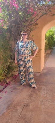 Wore this with the matching pants on a vacay weekend in AZ. Love the crop, slightly boxy style without being a bag, and perfect for the heat.