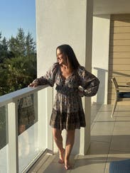 This dress is soft and the print is subtle but impactful. It was a perfect fall transition piece. I'm 5'7 and wore shorts under, it is a tad on the shorter side but cute!
