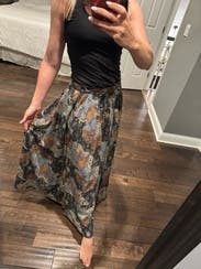 Beautiful skirt that can be dressed up or down. Almost purchased. It's really beautiful especially in person.