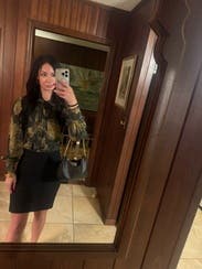 I loved this piece so much, between the fit, fabric, and pattern. It is the perfect blouse for a fall day to the office. I paired it with a matching green earring and black skirt with some loafers, and I felt so cute all day. I was never uncomfortable at all. 10/10 recommend!!!