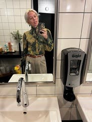 I’m more of a straight button up (not blouse) type of person, but this was an overall hit. The ruffles on collar and wrists are subtle and the bow neck moderate. Nothing overwhelmingly frilly. Green and gold pattern also was flattering for my skin tone and hit the right amount of festive for the holiday season. Fabric is lightweight, comfortable and completely opaque. Size note - I went up one based on reviews, and I’m glad I did. Normally a 4 and the torso/shoulders on the 6 fit great. The sleeves, however, felt overly billowy- but maybe that’s just the look?