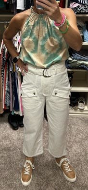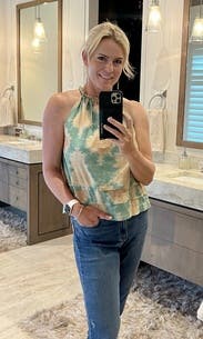 Really loved this top! Love the muted colors. Perfect length to wear out or tuck in.