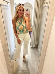 Loved the color palette. Maybe one size too large for me; usually an 8 in Ulla. Cut a bit low under the arms. Felt like I had to keep readjusting every now and then when I was wearing. Wished I had a strapless white bandeau to wear underneath so I didn’t have to think about it.