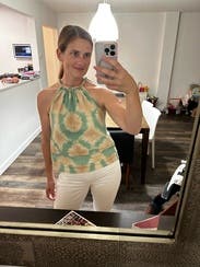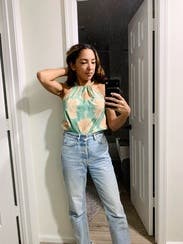 This is a well made top. I loved the twist at the halter collar. The top is a bit long for my height so tucking it in was a little challenging but otherwise I loved the design